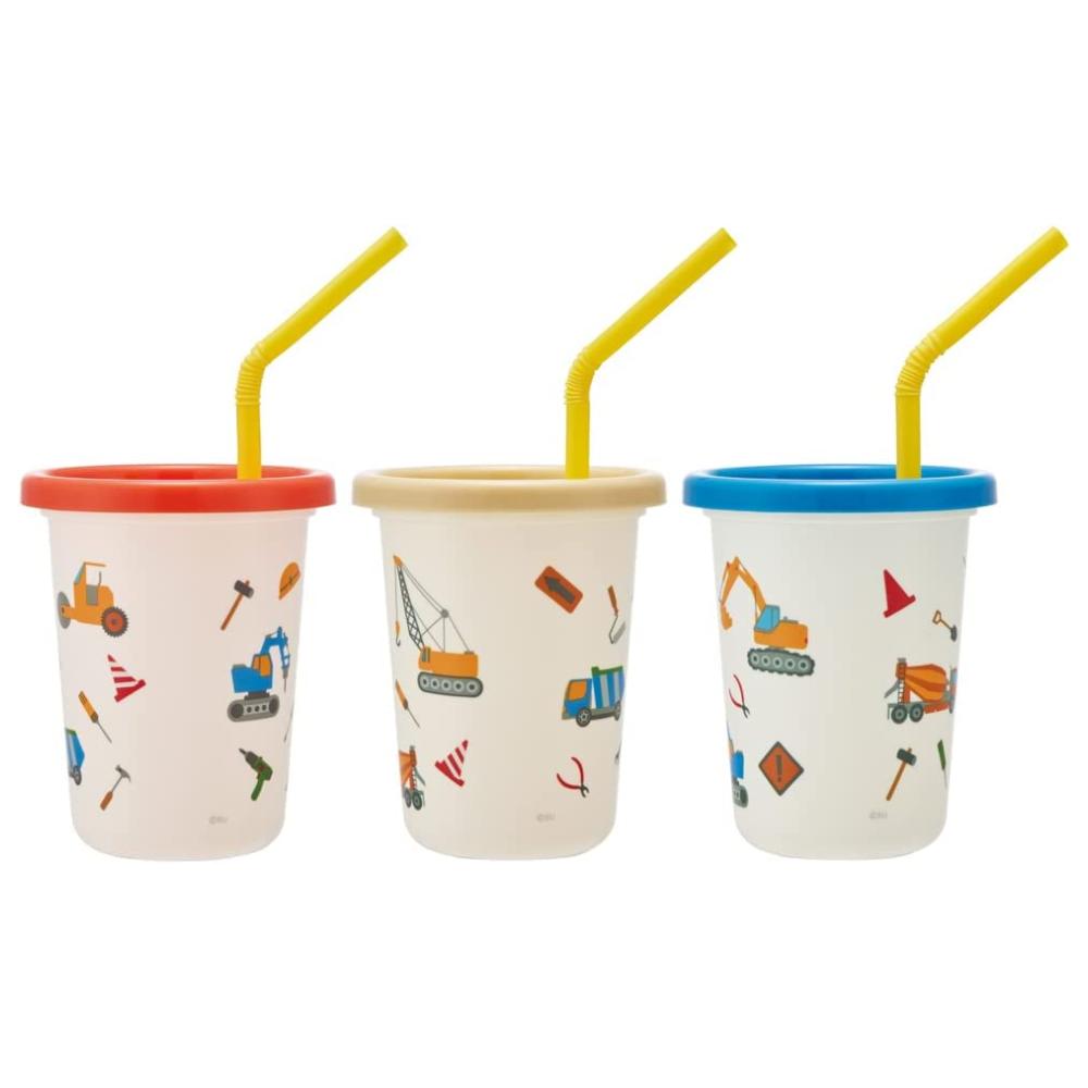 SKATER 工程車 3入塑膠吸管杯(SIH2ST/230ML) 日本製