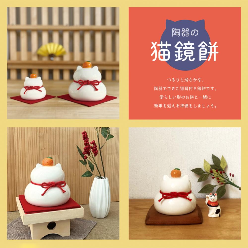 DECOLE CONCOMBRE 貓咪造型 新年 鏡餅 陶瓷擺飾(10.5X11.6CM)