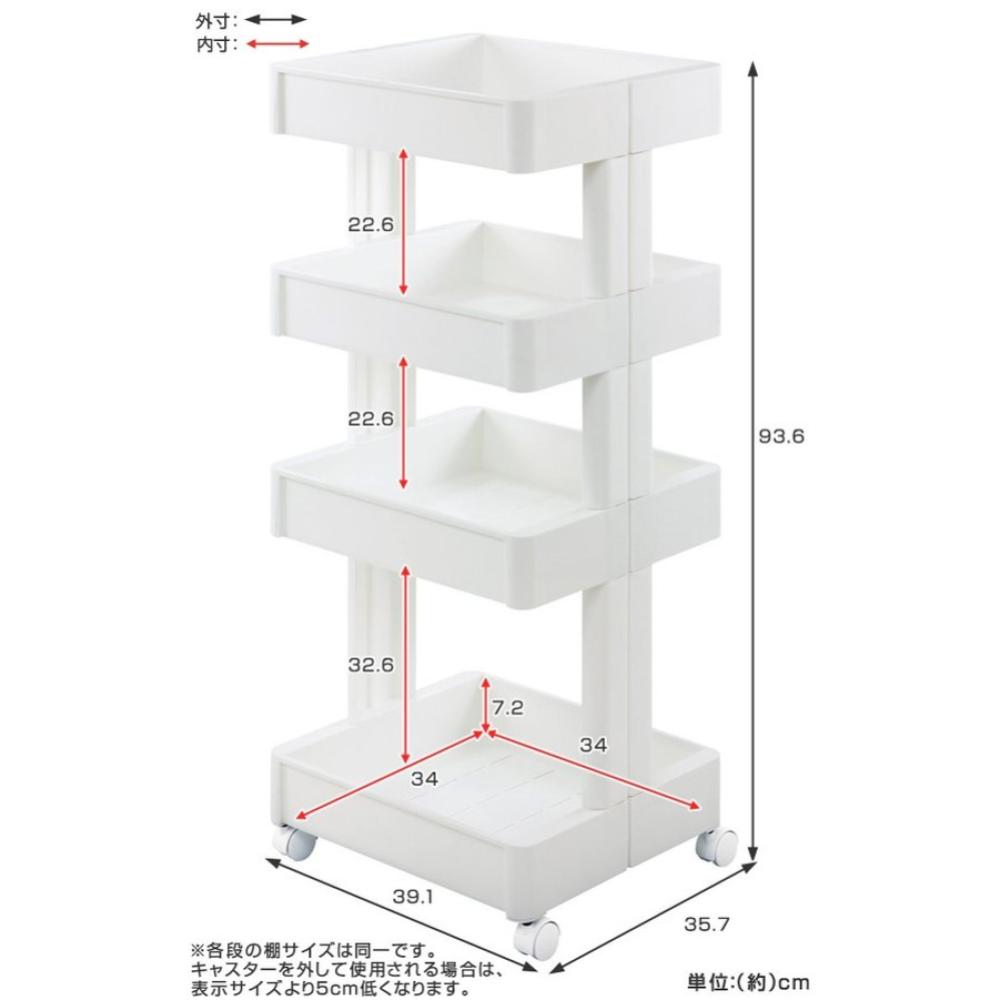 不動技研 FUDOGIKEN 360度4層收納架 置物架(白色/有輪) 日本製