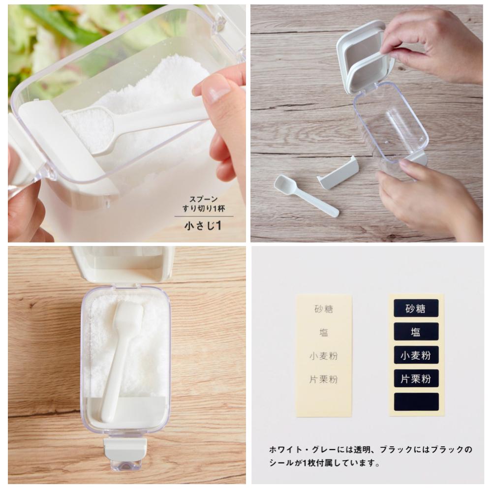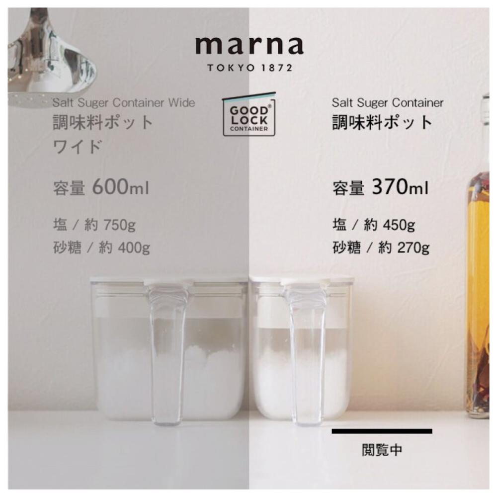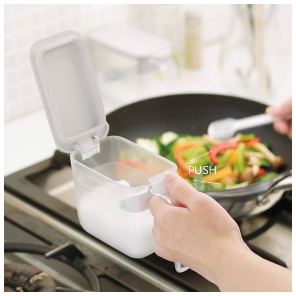 MARNA GOOD LUCK 防潮塑膠調味料罐附湯匙(單手開扣/白色/370ML)