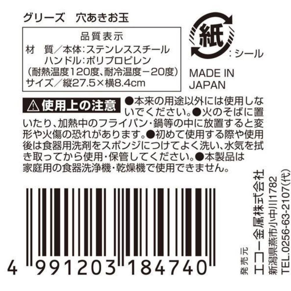商品產地:日本 商品尺寸:275×84mm 商品材質:不鏽鋼 / 聚丙烯 耐熱溫度:-20 - 120度 商品說明:瀝湯勺 可用於撈取食物及瀝湯,便於烹飪 採用不鏽鋼材質,具耐腐蝕性經久耐用 握柄帶有掛勾孔,可吊掛收納不佔空間 ♪ ※ 注意!不適用於洗碗機及烘碗機