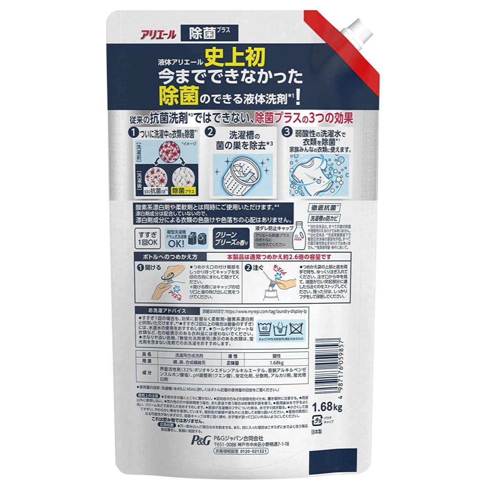 P&G ARIEL 抑菌防霉洗衣精補充包(1680G) 日本製