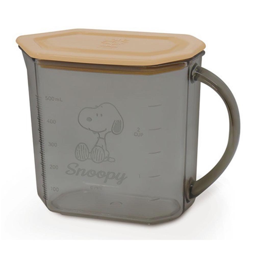 史努比 Snoopy 塑膠量杯附蓋(透明/灰色/500ML) 日本製