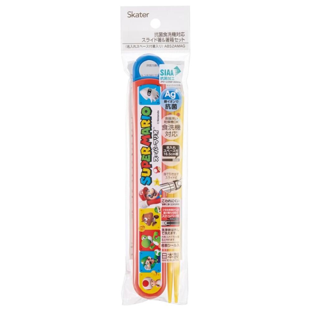超級瑪利歐兄弟 Super Mario Bros 抑菌塑膠筷子附收納盒(ABS2AMAG) 日本製