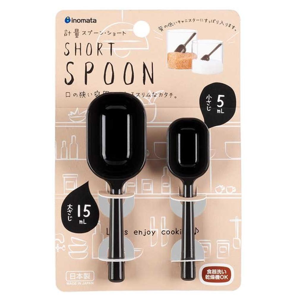 INOMATA 塑膠短柄量匙2件組(黑色/5ML&15ML) 日本製